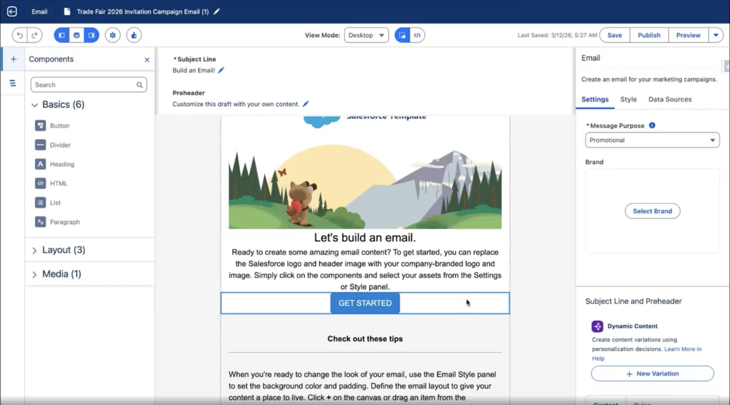 Mit Marketing Cloud Next verändert sich vor allem der Einstieg in die Kampagnenarbeit. Kampagnen starten nicht mehr zwingend bei null, sondern können über ein Briefing angestoßen werden. Sie definieren Ziel, Rahmen und Inhalte – daraus entsteht eine erste Struktur, auf der Sie weiterarbeiten.